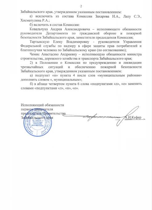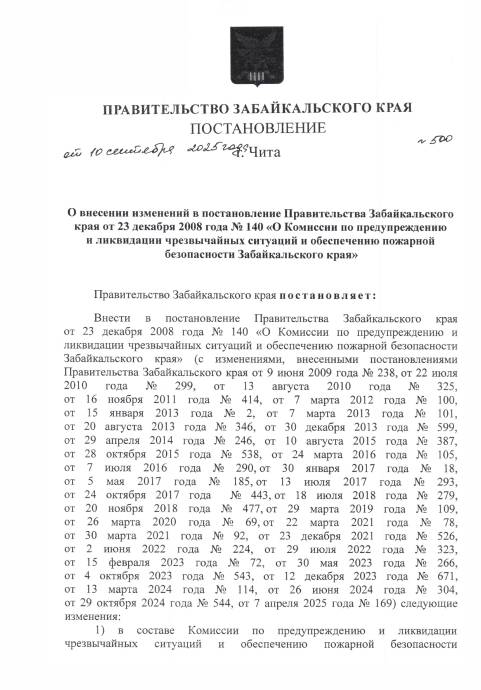 Постановление Правительства Забайкальского края о внесении изменений в постановление Правительства Забайкальского края от 23 декабря 2008 года №140 "О Комиссии по предкпреждению и ликвидации чрезвычайных ситуаций и обеспечению пожарной безопасности Забайкальского края"