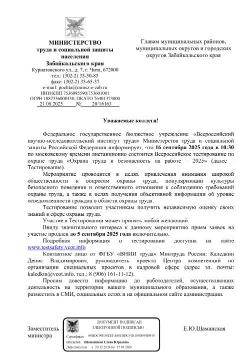 16 сентября 2025 года в 10:30 по московскому времени дистанционно состоится Всероссийское тестирование по охране труда «Охрана труда и безопасность на работе – 2025»