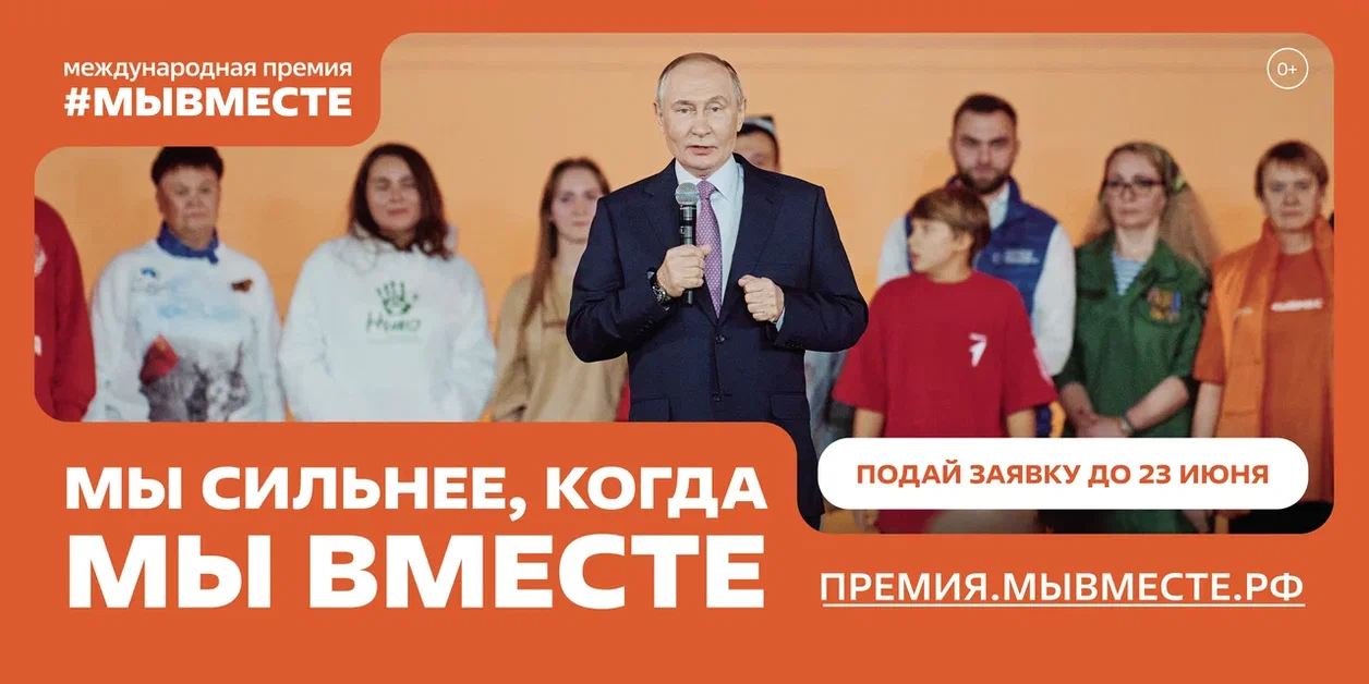 Регистрация участников осуществляется на официальном сайте Премии (премия.мывместе.рф). Заявочный этап проходит в срок до 23 июня 2025 года (включительно).