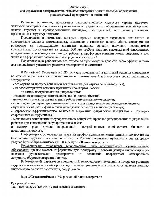 В Российской Федерации в настоящее время для предприятий и компаний созданы уникальные возможности для профессиональной переподготовки квалифицированных специалистов с целью содействия внедрению передовых технологий (информация в Приложении)