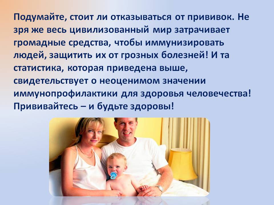 Перед тем, как провести вакцинацию, необходим осмотр врача, термометрия, в день прививки Вы должны быть здоровы.
